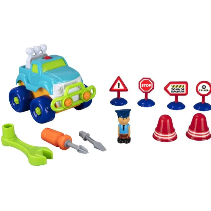 Prepara una zona de reparación y construye tu coche. Incluye un destornillador y 2 puntas intercambiables para que todo sea más fácil. Con este set de montaje, niños y niñas, podrán diferenciar tamaños, formas y equivalencias, desarrollando su imaginación.