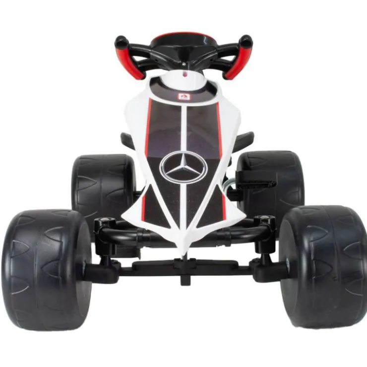 Este tipo de vehículo a pedales fomenta el ejercicio durante el juego y desarrolla la psicomotricidad de los niños, al tiempo que promueve valores como la competitividad y el juego en equipo. Está fabricado en España y cuenta con la certificación EN71 de seguridad europea.