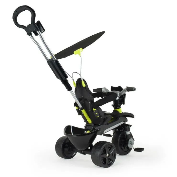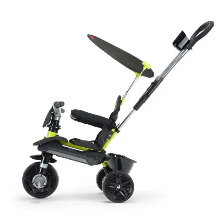 Recomendado desde los 10 meses hasta los 3 años, este triciclo evolutivo dispone de varias formas de montaje, con elementos extras que pueden retirarse conforme el niño crece.
