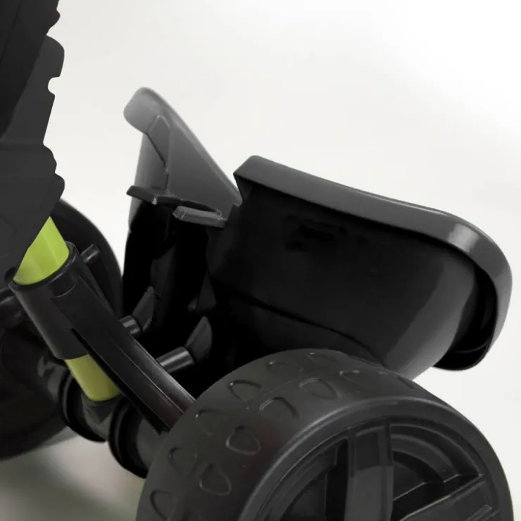 Tanto el chasis como arco de seguridad son metálicos para una mayor resistencia. Dispone de una cubeta trasera porta-objetos y un porta-botellas (botella no incluida). Se fabrica en España y cumple con las medidas de seguridad exigidas por la UE. Peso máximo soportado: 25 kg. Color verde.