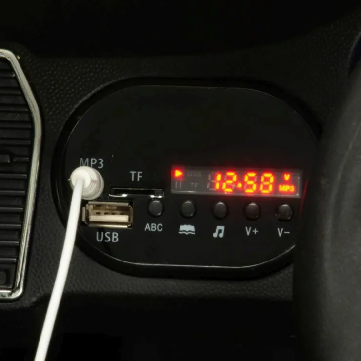 Con licencia oficial Porsche, las puertas se abren como en los coches de verdad y el salpicadero cuenta con luces y sonidos para darle mayor realismo. Gracias a la entrada de USB, la conexión de mp3 mediante cable Jack y el control del volumen, los peques podrán disfrutar de la mejor música mientras conducen.