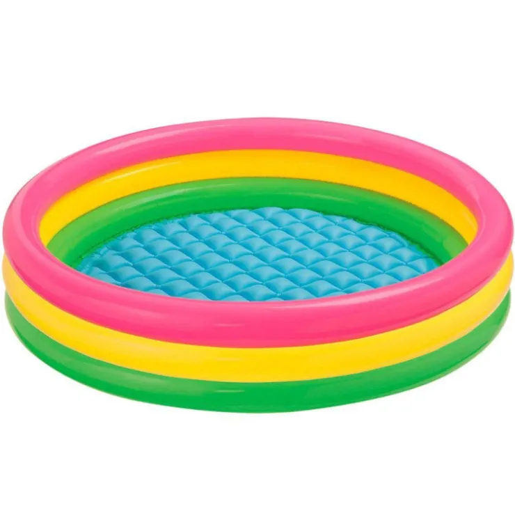 Las medidas de la piscina son: 147 x 33 cm y con capacidad para 299 litros de agua.