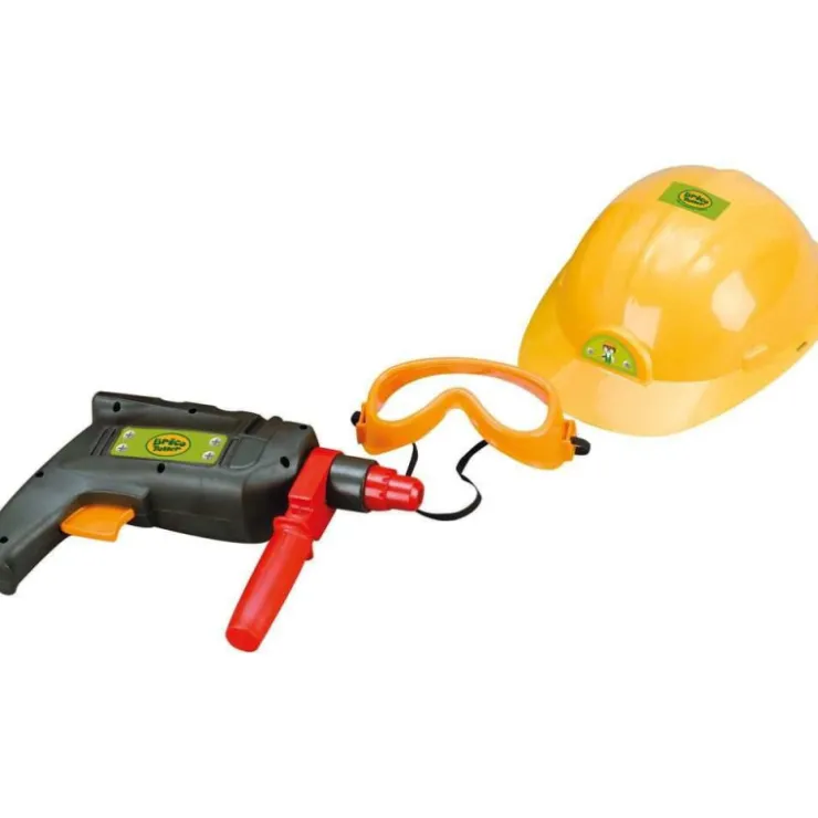 Un completo maletín con muchas herramientas como las de los profesionales de verdad. Aprende a usarlas para ayudar en las reparaciones domésticas y convertirte en el manitas de la casa. Presiona el gatillo de la traladradora y dará vueltas sonando como los de verdad. Funciona sin pilas.
