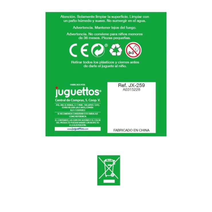 Retirar todos los plásticos y cierres antes de darle el juguete al niño.