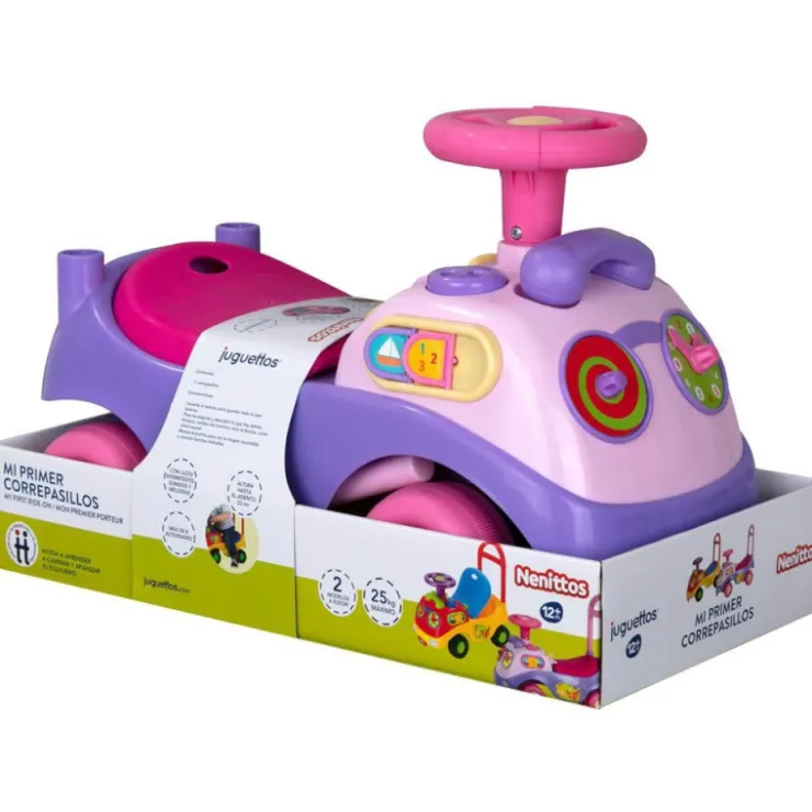 No debe utilizarse por niños mayores de 36 meses. Resistencia insuficiente. Utilizar a partir de 12 meses y hasta 25 kg de peso máximo. Utilícese bajo la vigilancia directa de un adulto. El producto ha sido diseñado para acomodar sentado a 1 niño cada vez y de este modo evitar que se produzcan lesiones. Utilizar un calzado adecuado para usar el producto. El juguete debe usarse con precaución para evitar caídas y colisiones que pueden causar daños a los niños o a terceras personas. Tenga cuidado del niño que está montado y no permita nunca que el niño juegue con el producto cerca de calles, cruces, todas las zonas con tráfico, piscinas, escaleras, caminos con pendiente, cuestas y callejones. Este producto está diseñado para su uso en interiores. El niño debe montar en el correpasillos sólo sobre una superficie llana y lisa. Examine ocasionalmente el volante para asegurarse de que la tuerca y el tornillo están ajustados y seguros. El producto se debe examinar regularmente para evitar vuelcos y caídas. Se podría correr algún peligro si el producto no está correctamente ensamblado. Mantenga las piezas pequeñas y la bolsa de plástico fuera del alcance de los niños porque podría plantear un peligro potencial de asfixia. Este juguete no tiene freno.