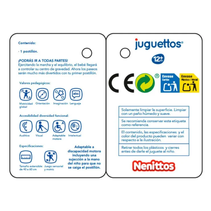 ADAPTABLE A DISCAPACIDAD MOTORA INCLUYENDO UNA SUJECIÓN A LA MANO DEL NIÑO PARA QUE NO SE CAIGA EL POSTILLÓN.