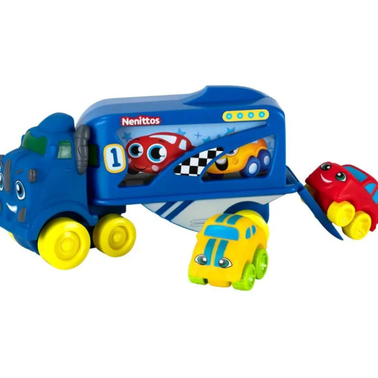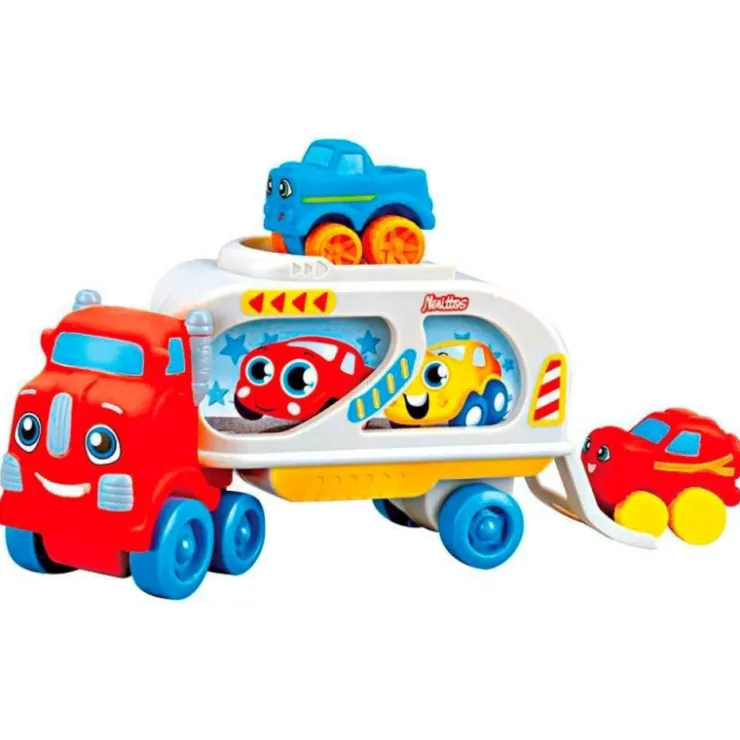 Imitando se ejercita la imaginación, se exterioriza la percepción de la realidad y se aprenden todo tipo de acciones. Este camión tiene la cabina blandita y también incluye dos coches blanditos para que tu bebé no se haga daño mientras juega.