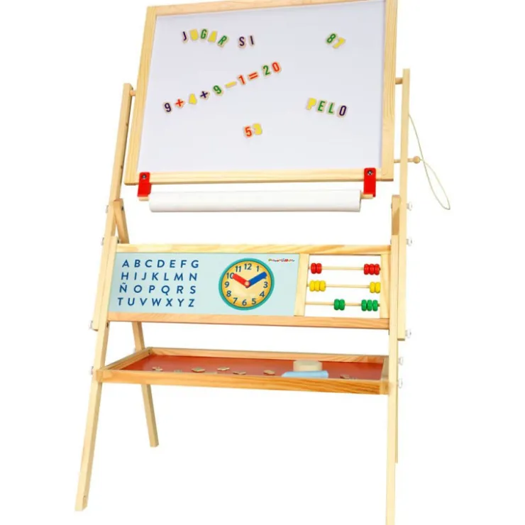 Con esta pizarra de Manualidedos tu arte no tendrá fin. Tiene 2 lados para pintar con tizas y rotulador. Además podrás jugar con las letras y números magnéticos que incluye y te servirá como caballete cuando quieras dibujar sobre el papel continuo.