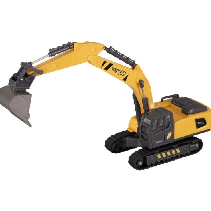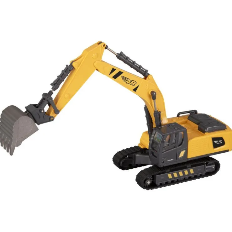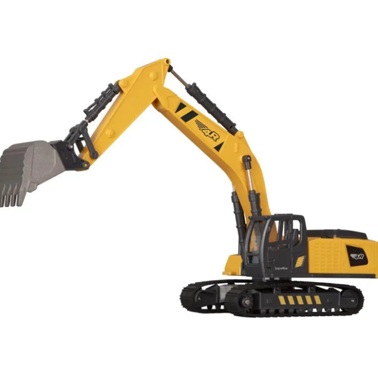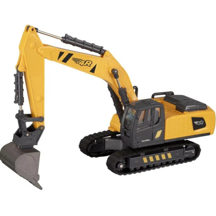 Excavadora con base giratoria, pala, brazos articulados y cadenas. Permite reproducir roles adultos de oficios relacionados con las obrasy construcciones, ejercitando la coordinación de movimientos y la imaginación.