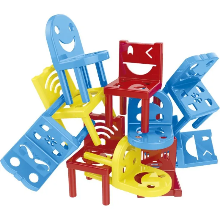 Divertido juego de habilidad donde cada jugador deberá colocar una silla encima de otra, evitando que la torre se caiga. Mejora la psicomotricidad fina y el control del pulso intentando equilibrar las sillas. Fomenta la socialización y la diversión en grupo.