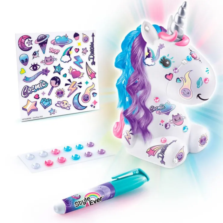 · Unicornio para decorar: ¡Se incluyen más de 30 pegatinas, brillantes y un rotulador para personalizar tu Unicornio Cósmico!